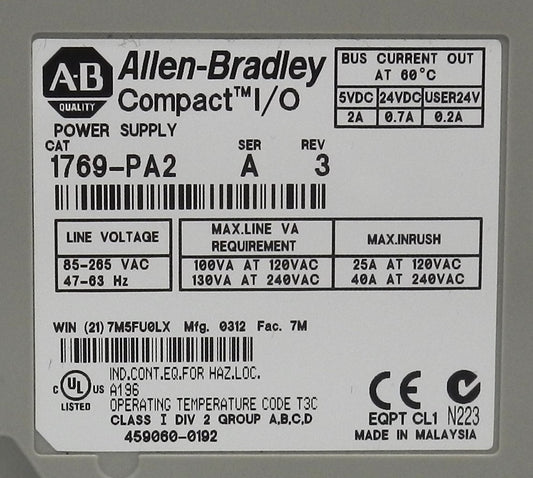 ALLEN-BRADLEY 1769-PA2 POWER SUPPLY
